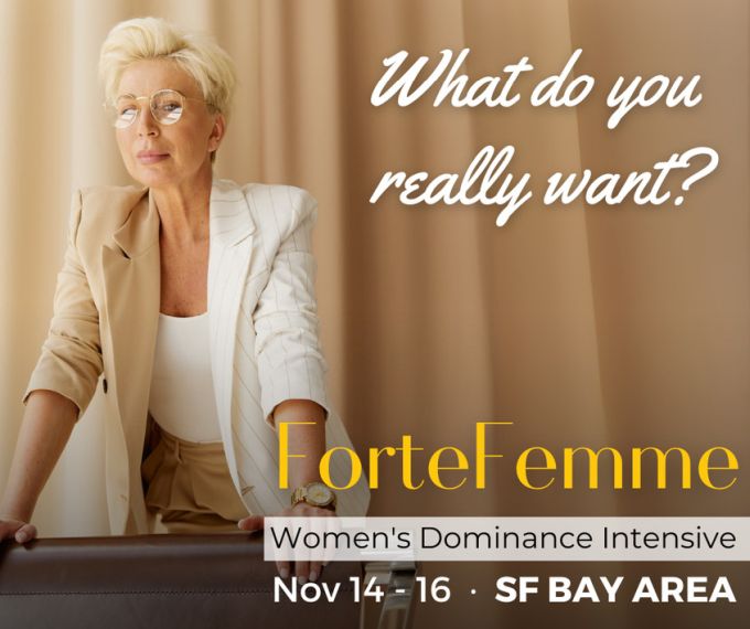 If you’re a woman in the San Francisco Bay Area and interested in learning more about dominance then you might want to consider ForteFemme. It’s a weekend long (Nov 14-16) intense class for 9 women interested in exploring dominance and femme empowerment.