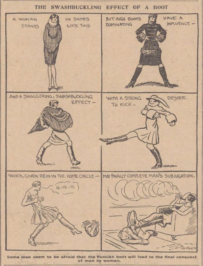 In the meantime here’s a visit to the past with a cartoon from 1925 (at least that is according to reddit). Not a fan of the cat kicking part, but I think we can all get behind the idea of some swashbuckling boots and the subjugation of man.