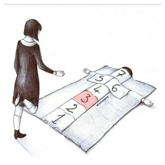 Oddly, this is a modified version of the original. The artist is Virginia Mori and you can see the original – along with a lot of her other weird but wonderful art – here. The original artwork doesn’t have the colored square and it’s clear that it’s a a girl under the rug. This has been altered to suggest a boy and a target square to be landed on. Perverts up to no good again.