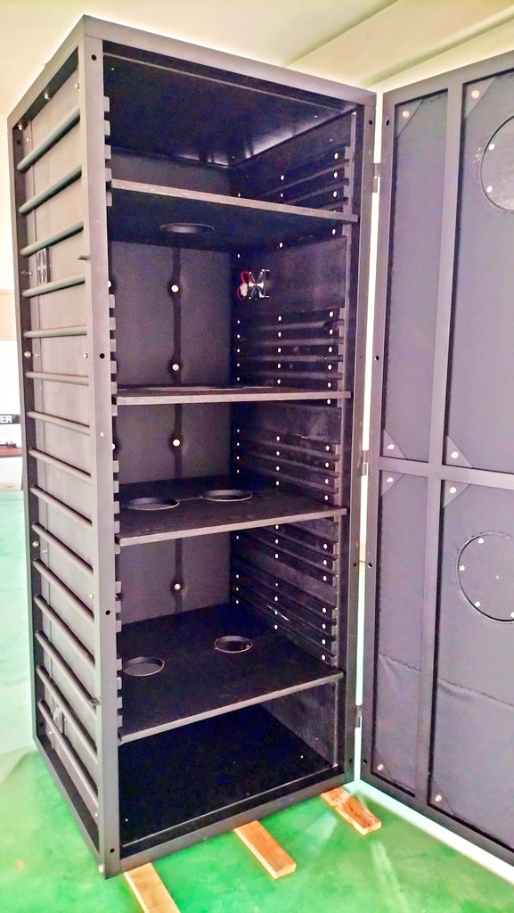 I thought this was a pretty hot variation on a cage design. The outside is a standard cage, which is turned into a box with side panels, which in turn have slots for the shelves with limb/neck cut-outs. Combine it with the right bondage gear and it’d be a highly objectifying set-up. Just imagine the door closing on you and the click of a padlock.